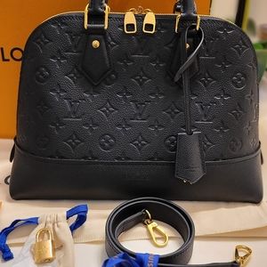 💝 New Louis Vuitton Neo Alma Pm Empreinte Leather Handbag w receipt! Sold out online and made in France for the collectors out there. This bag is so beautiful and elegant but I never had the chance to use it. I purchased it early this year. It deserves to be flaunted. Black embossed leather with a gorgeous purple cobalt interior. My loss your gain. As you know LV bags never go on sale so here's your chance to get a new one for a $100 less than retail. You will get the dust bag and Box along with the lock and keys and strap with Lv ribbon. I will provide a copy of the receipt to the purchaser. Thank you for looking! :)