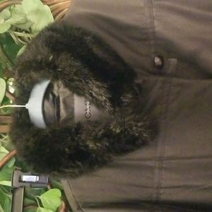 Bromley collection black faux fur trimmed collar