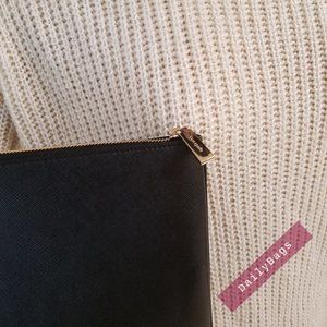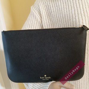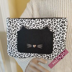 NWT KATE SPADE LARGE ZIP POUCH MEOW MULTI BLACK WHITE LEOPARD DOTS NOVELTY