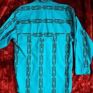 Vintage teal with black western shirt. Great condition. No rips, stains or tears. From a smoke free and pet free home.