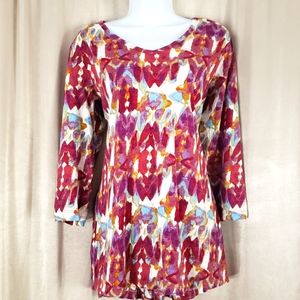 NWOT LOGO purple multicolor abstract print 2 pockets tunic T-shirt Womens Small