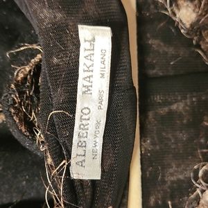 Alberto Makali Leopard Print Top with Matching Scarf, to make it a cowl neck, unknown size, probably a small, will fit size 4, tunic length, front and back lined, whole top is full of gold/brown strings as you can see in the pictures