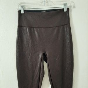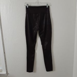 Assets by Spanx Faux Leather Crackle Leggings Hi Rise Wine Black Medium