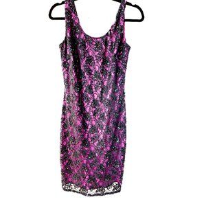 Adrianna Papell Evening Black Lace and Beaded Cocktail Dress Over Purple Size 6