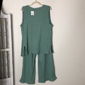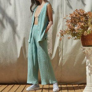 Your new go-to knit set featuring Sleeveless, Button-Front Top & Matching High-Rise, Wide-Leg Pants in