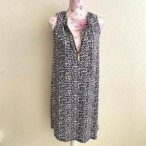 Michael Kors sz:M Black White Leopard Animal Print Sleeveless Zip Dress