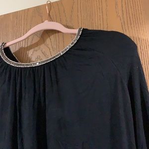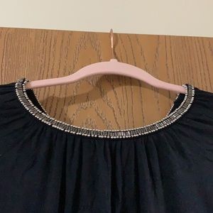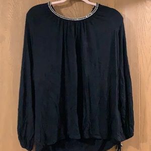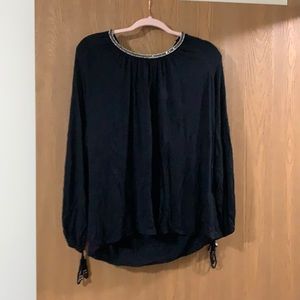 ▪️ ROSE + OLIVE ▪️ Black Peasant Top with Shiny Beading