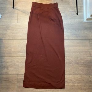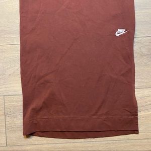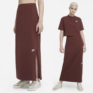 Nike Sportswear maxi skirt. Reddish brown. High waisted. Side zipper. Athleisure, loungewear, athletic, yoga, workout, running, spring, summer, vacation, beach, cruise, casual.