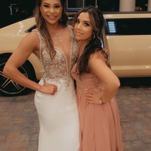 Gorgeous bridesmaid dress! I had this dress altered because I’m petite. It can be for someone who is 4’11” to 5’2” and still be long enough with heels!