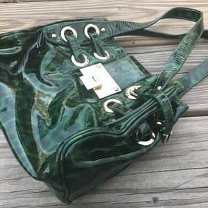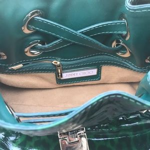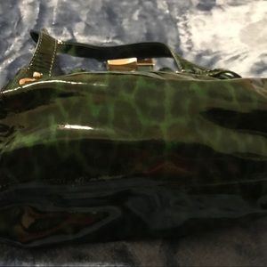 Jimmy Choo Roquette Bag Green Black Leopard Print Patent Leather Shoulder Bag