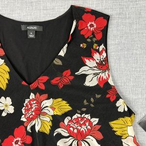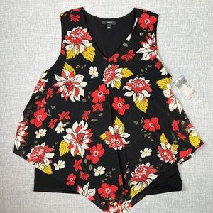Alfani Red Floral Asymmetrical Sheer Overlay Tank Top Petite Size Large