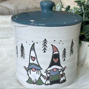 CERAMIC GNOME COOKIE JAR Gnome Canister WHIMSICAL MAGICAL WINTER GNOMES JAR