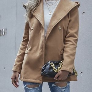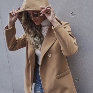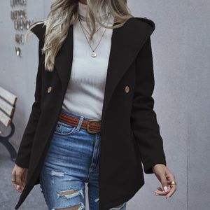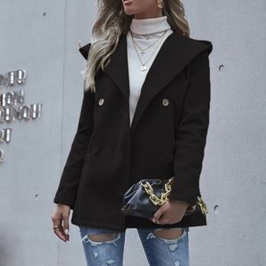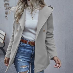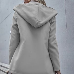 Grey hoodie Button Pea Coat Jacket Minimalist