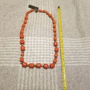 Fabulous rich orange color beads separated by smaller beads with crystals for a bit of bling.