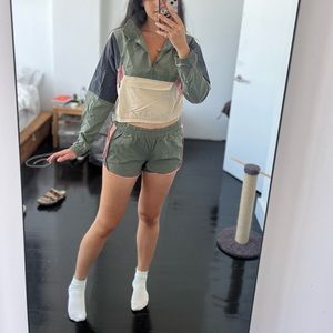 AERO NWT Army Green and Pink Windbreaker zip up and shorts athletic set