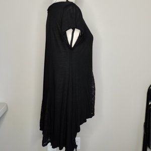 Short sleeve high-low top with lace panels on the front.