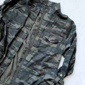 Sanctuary Camo Fringe Hem Zip Up Jacket