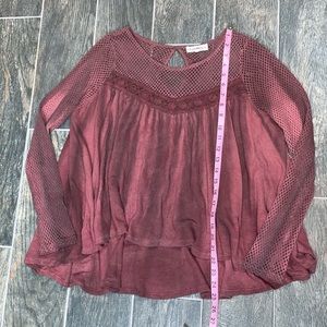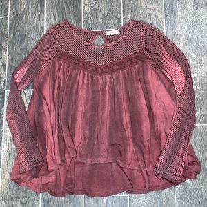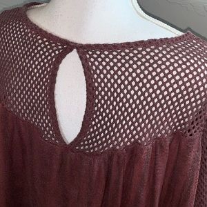 Altar’d State burgundy flowy top. Mesh top with the-dye type colors throughout. Keyhole on back of neck. No holes, stains, or piling. Excellent condition. Smoke free home.