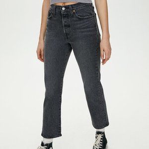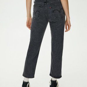Levis Premium Womens Wedgie Straight Crop Denim Jeans Black Gray High Rise NWT