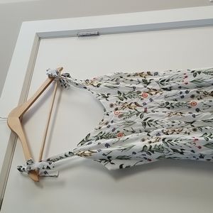 Pretty floral pattern, tie up straps allow for adjustment for perfect fit, zip side closure, elastic detail in back