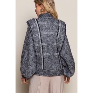 This soft comfortable grey heather plaid medium weight knit jacket is for the true fashionista. It’s bold, unique & definitely makes a statement.