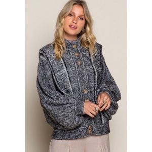 Heathered Charcoal Button Front Military Inspired Sweater Jacket