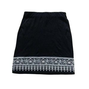 Talbots Embroidered Knit A-line Pencil Skirt Size XS Black White Aztec Southwestern