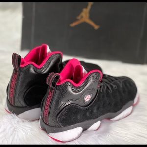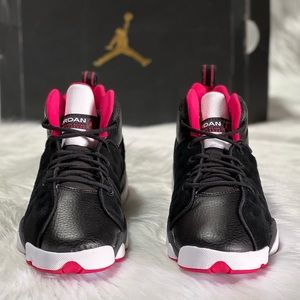 Drawing inspiration from the Air Jordan 13, the Jordan Jumpman Team 2 is great pair of shoes to have for all ages especially in grade school. This shoe is designed with a perforated leather upper and features an iconic Air Jordan 13 outsole. This colorway has a highlighted rush pink accents so that they really pop off the shoe with the black base. Grab a pair of these so your kid can really stand out on the playground.