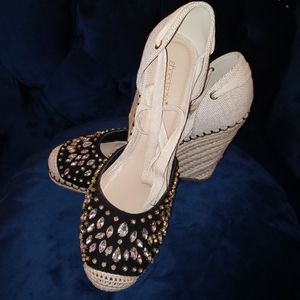 Hello @lorab43 thank you for stopping by my closet and checking it out. These beautiful wedges are regular width but I wear a wide width and I can fit them. I hope this helps.