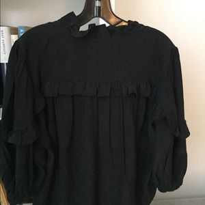 Frame Black Silk Ruffle Blouse