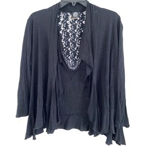 BOBEAU Black Crochet Lightweight Knit Cardigan Size Medium
