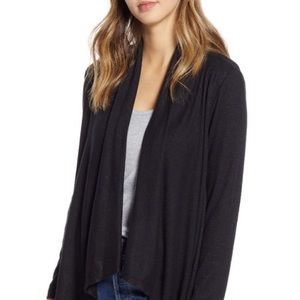 Bobeau Black Crochet Lightweight Knit Cardigan Size Medium comes preloved in VERY GOOD condition! Some light wear and fading from wash and wear. No rips tears or stains though :) Lightweight knit cardigan style top. Perfect to layer for summertime. Crochet open back detail. Waterfall front and long sleeves. Flutter hem. So pretty and romantic! Bobeau Black Crochet Lightweight Knit Cardigan Size Medium.❤️
