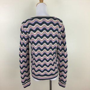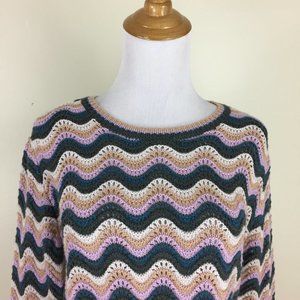 BCBGMAXAZRIA Multi-Colored Merino Wool Blend Pointelle SANJA Pullover Sweater