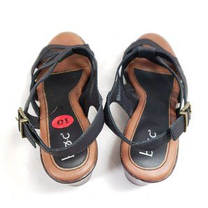 BOC Strappy Slingback Sandals Women's Size 10 Black Faux Leather (tu18)