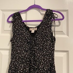 Polka dot dress. Mid thigh length. Cute shoulder detail. Easy to wear a normal bra with. Also bump friendly. (22 weeks)