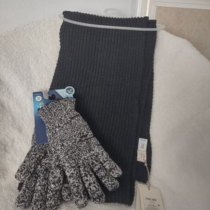 SALE 🛍️ !!! Beautiful Winter Combo: Isotoner Gloves Black & White with Smart Dri Technology; Water Rolls Off Hands Stay Drier. a. New Day Black Scarf. NWT.