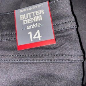 Avenue Butter Jet Black Denim Ankle Jean, size 14
