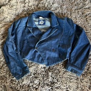 This jacket pretty much sums up the 80's. Authentic VINTAGE (super soft) denim jacket....Drop shoulders equipped with shoulder pads. POP the collar and make a statement in this baby! RARE GEM!!!!