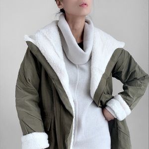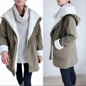 OLIVE FAUX SHEARLING PARKA JACKET