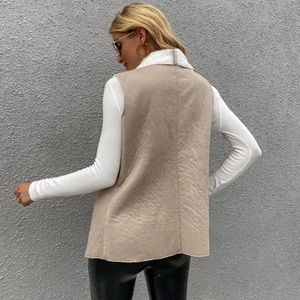 Teddy shearling lined vegan suede fold over collar vest tan khaki cream