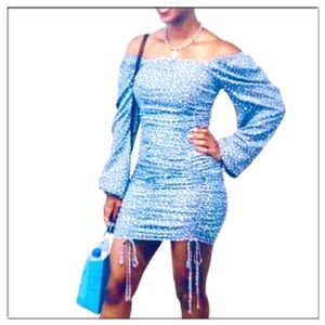 SOLD-Bianca Puff long sleeve Double Ruched blue dress