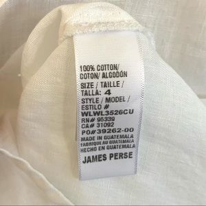 JAMES PERSE Casual Linen White Shirt SIZE 4 NWT
