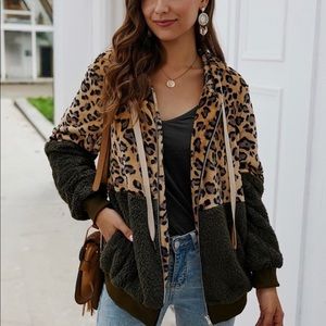 New! Clearance 🔥 Dark Green Leopard Sherpa Hoodie with pockets