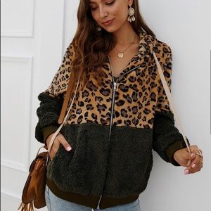 New! Clearance 🔥 Was 54.00 Super Soft Dark green leopard Sherpa hoodie