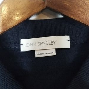John Smedley Polo Longsleeves Sweater Pure Wool Size XL Navy Blue