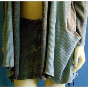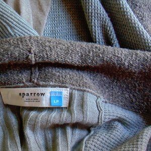 Sparrow high low patchwork open cardigan sweater from Anthropologie in a size Petite Large. A-line. Heathered brown, ribbed gray knit, solid beige. Pockets. 100% cotton. Hand washable. Comes from a smoke free home. In excellent condition.