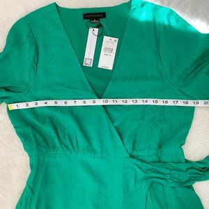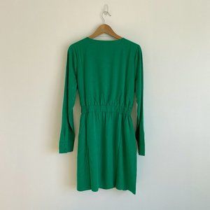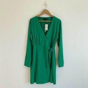 Sanctuary Green Wrap Casual Dress, Long Sleeve, V-neck, Ties at waist, Lined