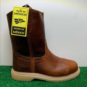 Men's Work Construction STEEL TOE Boots Pull On Leather OAK COLOR