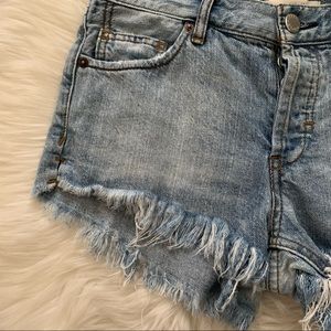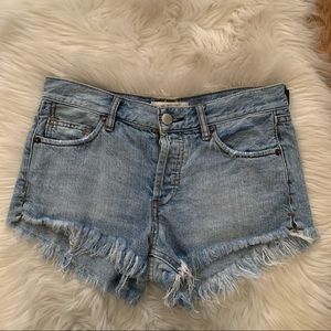 We the Free Blue Denim Cutt Off Jean Button Mid Rise Fly Shorts Size 24