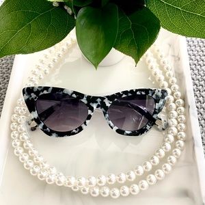 Cat eye sunglasses with a mottled faux tortoiseshell design.